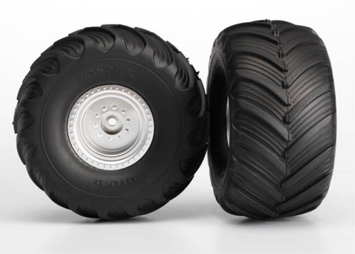TraxxasTraxxas 3665 - Tires & Wheels, Assembled, Glued (Satin Chrome Wheels, Terra Groove Dual Profile Tires, Foam Inserts) (Nitro Rear/ Electric Fron...