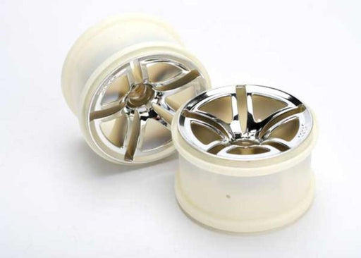 View full detailszTraxxas 5574 - Wheels Twin-Spoke 2.8" (Chrome) (Nitro Front) (2)