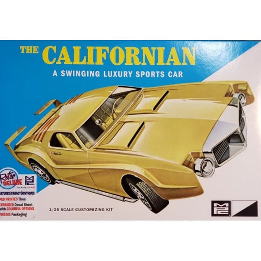 MPCMPC 942 1/25 The Californian - A Swinging Luxury Sports CarProduct Type: Plastic KitsetBrand: MPCScale: 1/25Requires assembly. Glue and paint sold ...