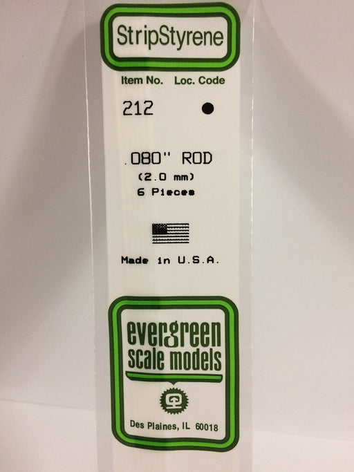 EvergreenEvergreen 212 Styrene Round Rod (0.080 X 14") - 6 piecesQuantity per pack: 6Dimensions (inches): 0.080 X 14"Dimensions (mm): 2.0mm X 350mm