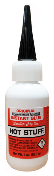 Hot Stuff Original is our thin CA glue with a viscosity (3cps) similar to water and no surface tension. When you have parts that fit exactly together, first get them in position, then run this instant glue along the crack, and it will wick right in. If you have tight-fitting joints of non-porous material, Hot Stuff thin CA glue will give you the best results as it will not create any extra space between the pieces, and since you get the parts aligned before applying this instant glue, you can be sure they will be perfectly in place when the glue cures.