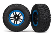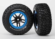 Traxxas 5885A - Tire & Wheel Assy, Glued (Sct Split-Spoke, Black, Blue Beadlock Wheels, Bfgoodrich Mud-Terrain Km2 Tires, Inserts) (2) (2Wd Front)